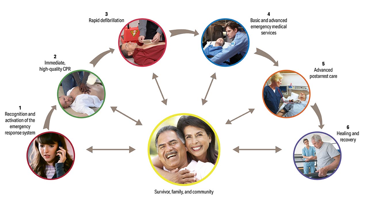 The primary focus of cardiac arrest management for providers is the optimization of all critical steps required to improve outcomes. These include activation of the emergency response, provision of high-quality CPR and early defibrillation, ALS interventions, effective post-ROSC care including careful prognostication, and support during recovery and survivorship. All of these activities require organizational infrastructures to support the education, training, equipment, supplies, and communication that enable each survival. Thus, we recognize that each of these diverse aspects of care contributes to the ultimate functional survival of the cardiac arrest victim.